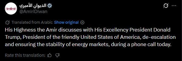 Trump Discusses Regional Developments With Qatari Emir Sheikh Tamim Bin Hamad Al Thani
