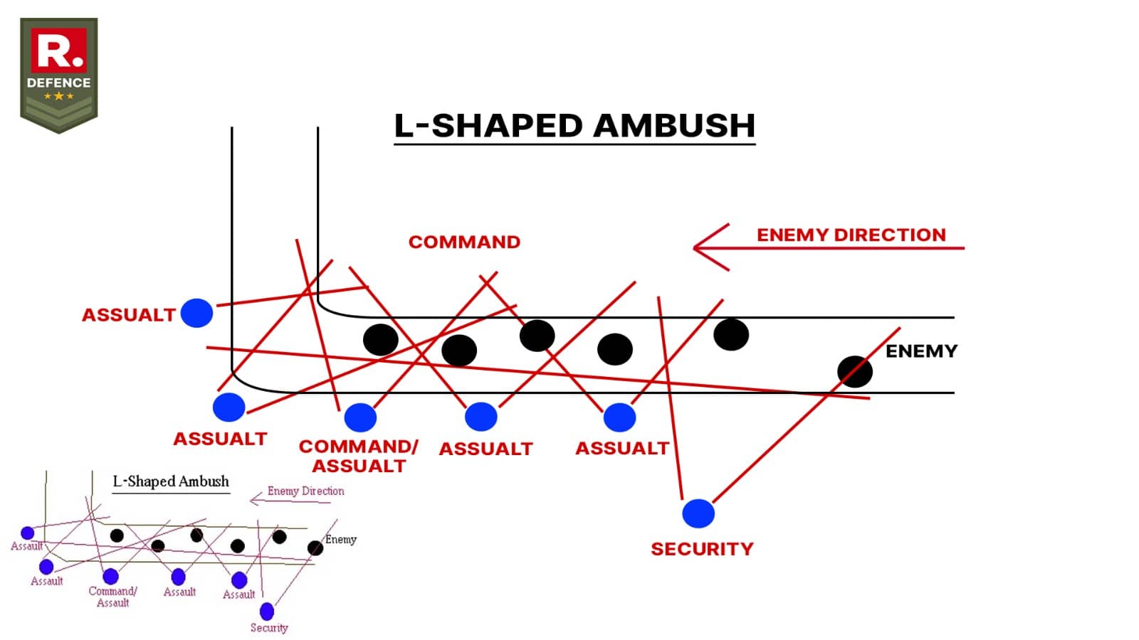 One firing line runs parallel to the enemy’s movement, while another runs perpendicular, creating a lethal crossfire. L-shaped ambushes are effective in intersections, river bends, or chokepoints.