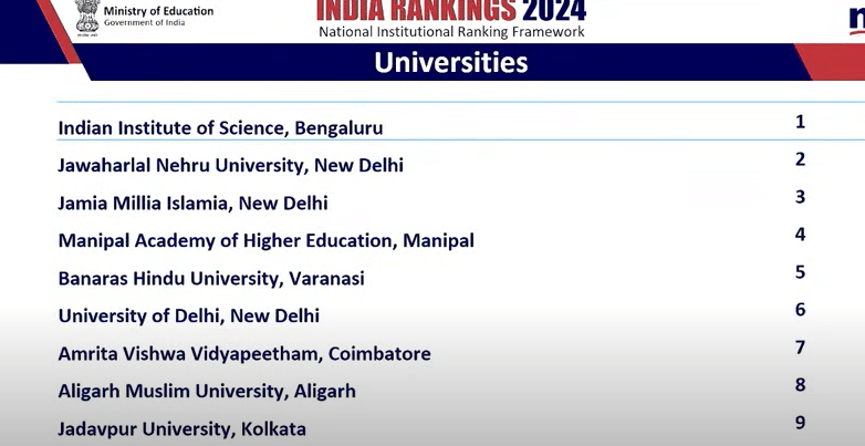NIRF Rankings 2024 LIVE Updates: MoE To Announce Indian University Rankings Today