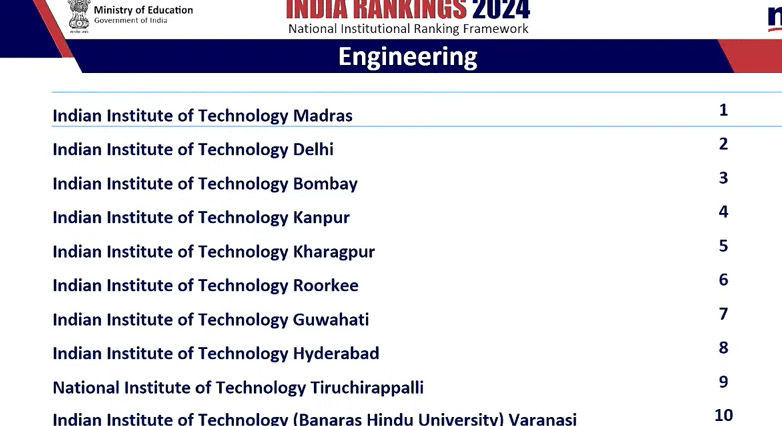 In 2023, IIT Madras was ranked the best engineering college in India. The second rank was bagged by IIT-Delhi followed by IIT-Bombay, IIT-Kanpur and IIT-Roorkee.