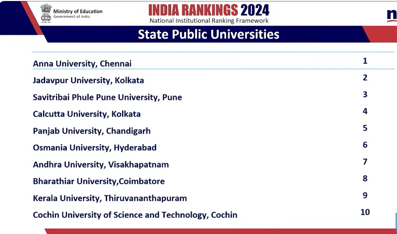 Top State Universities in India: Anna University, Chennai has been ranked the best state public university in India. Jadavpur University, Kolkata and SPPU, Pune have got 2nd and 3rd ranks, respectively.