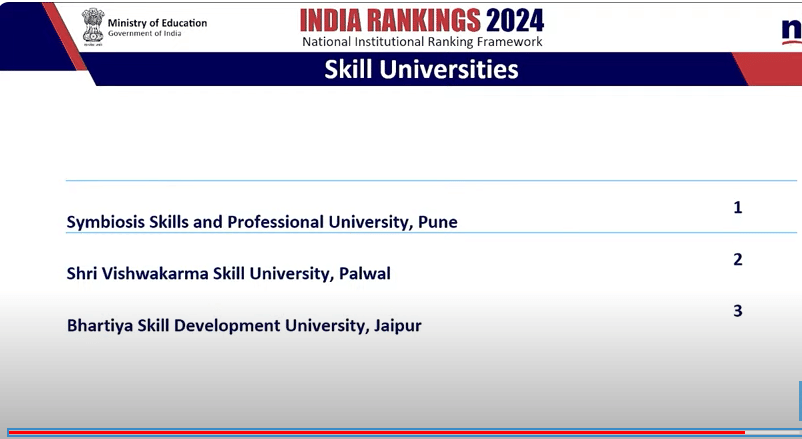 Shri Vishwakarma University, Palwal and Bhartiya Skill Development University, Jaipur have been ranked 2nd, and 3rd, respectively.