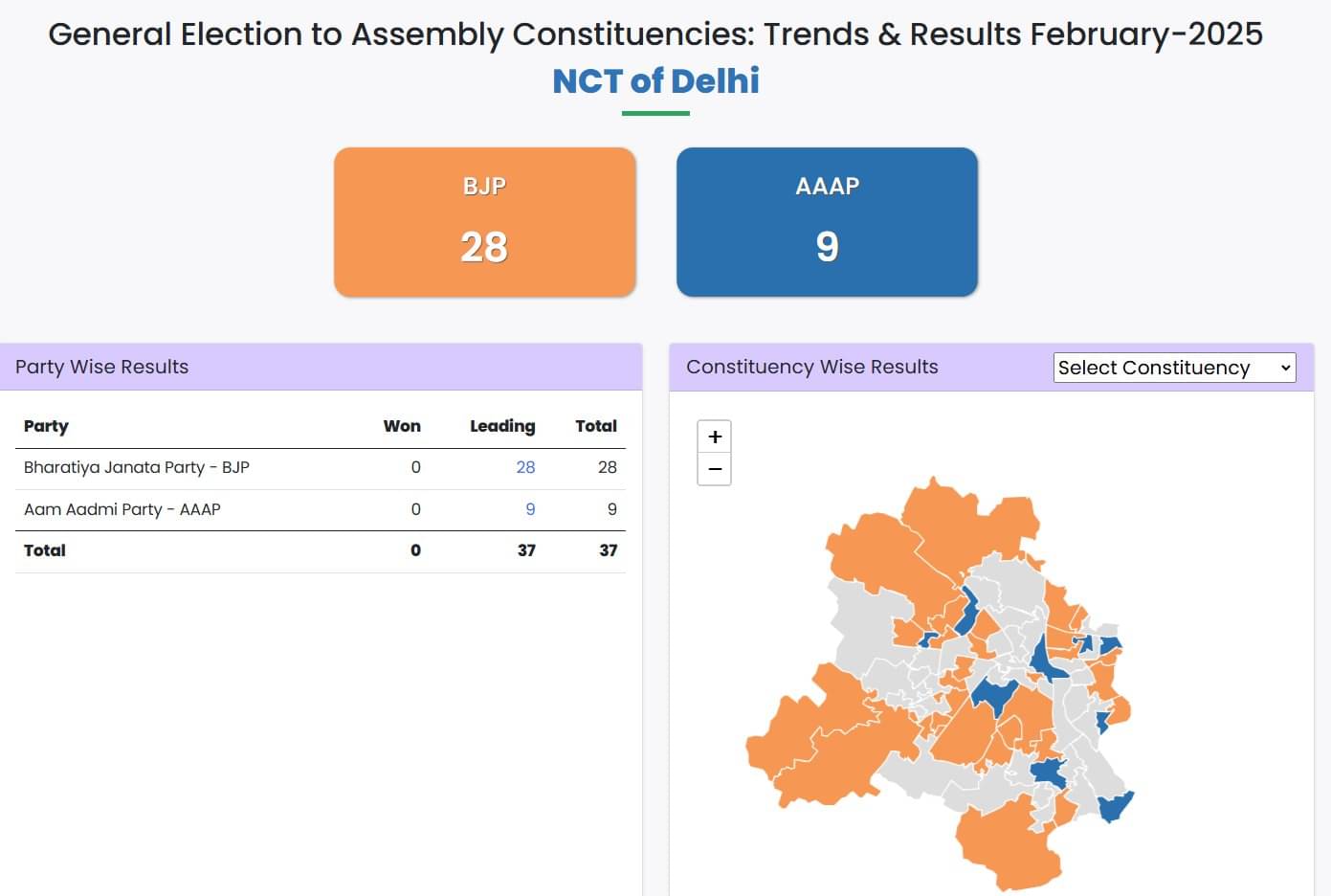 Early trends indicate the BJP is edging closer to the majority mark of 35 seats, signalling a strong performance in the national capital. With vote counting still underway, the party appears to have gained massive momentum. Stay tuned for the latest updates on this closely watched election.