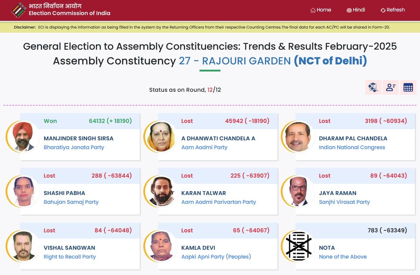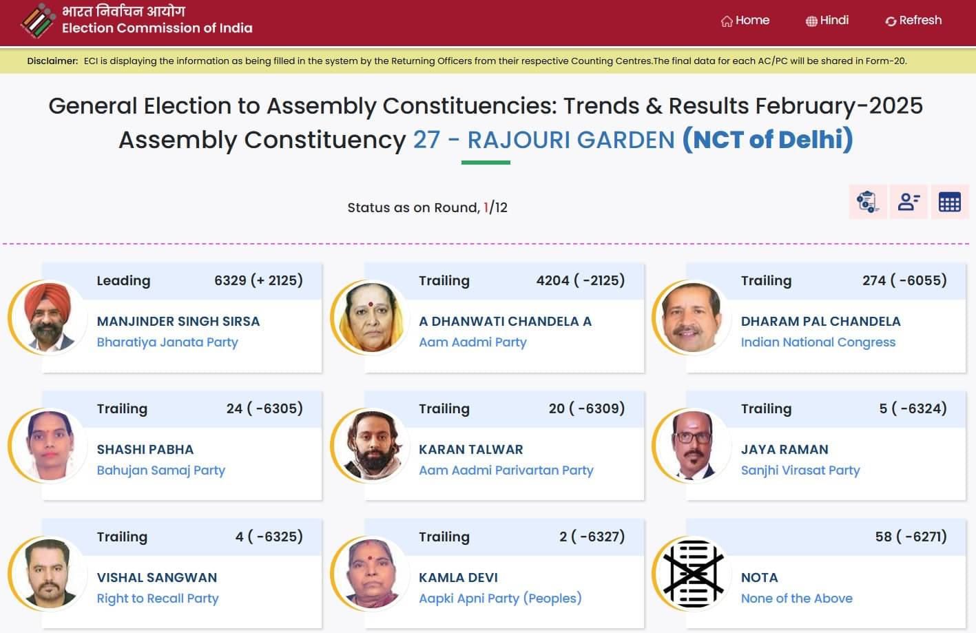 Delhi Election Result 2025 LIVE: BJP candidate leading in Vishwas Nagar