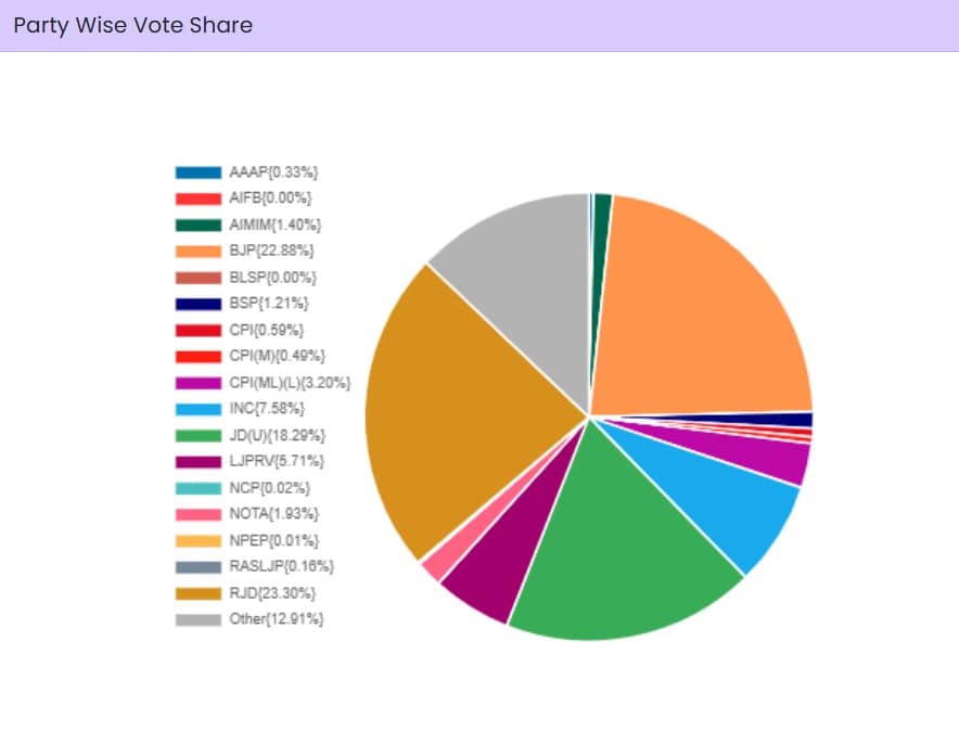 Sikandra's constituency is being led by Praphull Kumar Manjhi, who hails from the Hindustani Awam Morcha (Secular) party, with 2,088 votes, according to the official data.