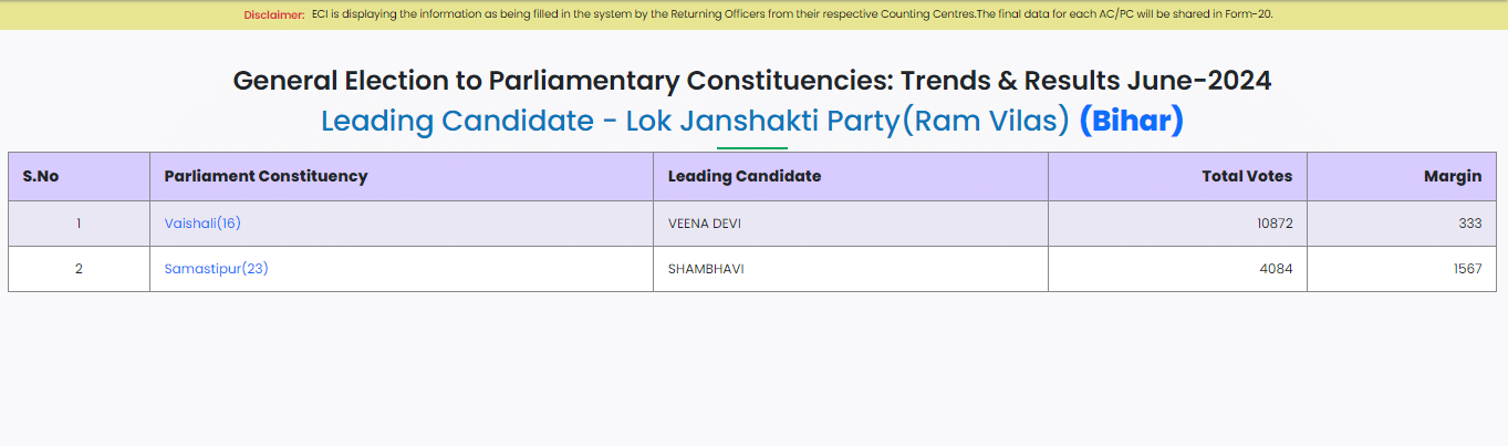 All 5 LJP (Ram Vilas) Candidates Leading in Bihar