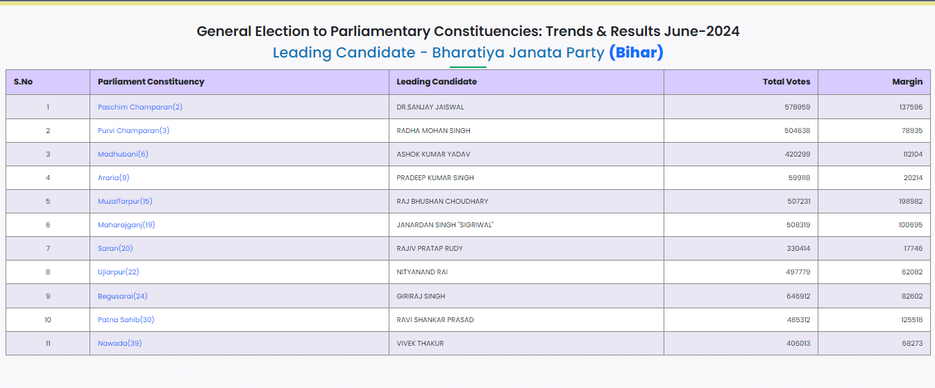 BJP Leads In 11 Seats, Wins Darbhanga