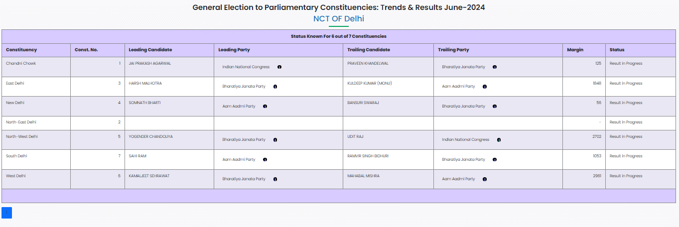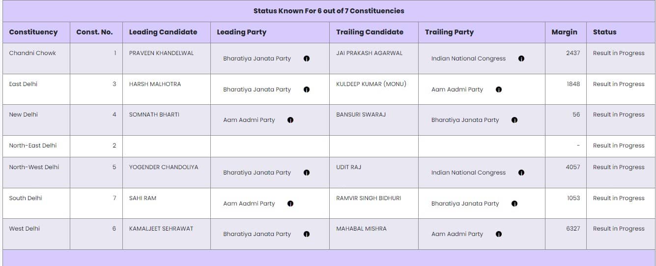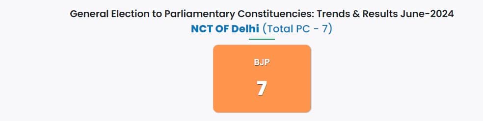 As per the latest trends, BJP is leading on all 7 seats of Delhi.