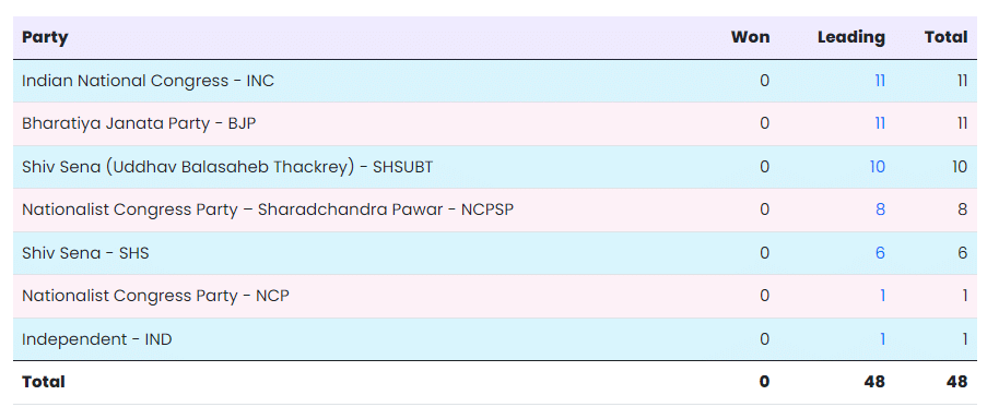 Maharashtra Poll Results 2024: INC and BJP Both Leading with 11 Seats
