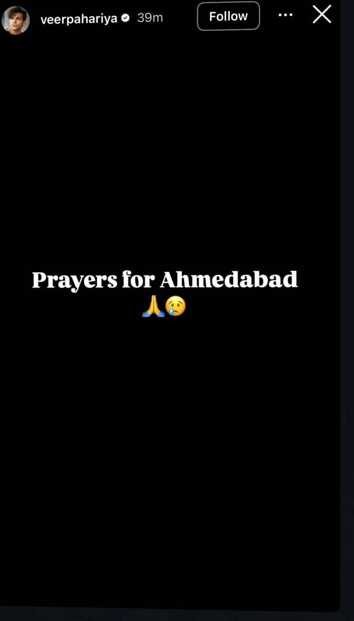 Sky Force actor Veer Pahariya wrote on his Instagram Stories, “Prayers for Ahmedabad”.