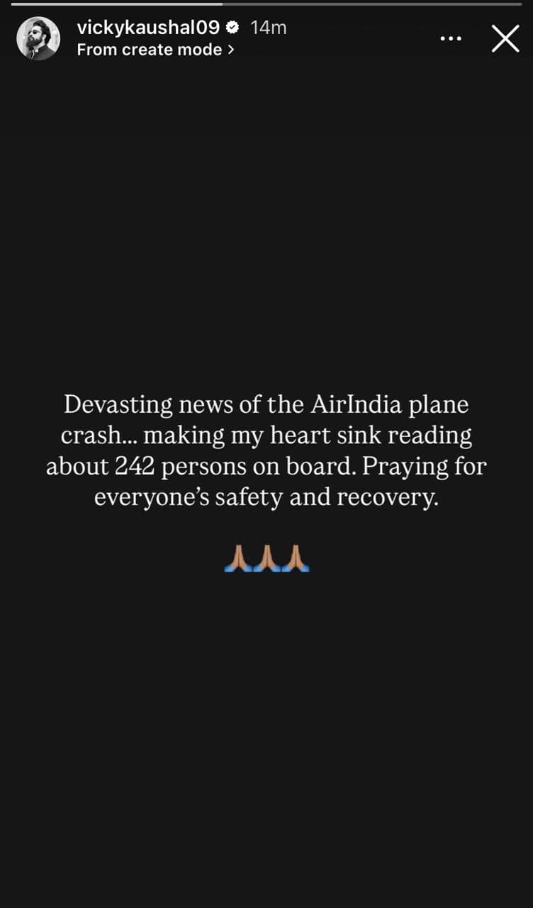 Vicky Kaushal is praying for the safety of those travelling in the Air India plane that crashed in Ahmedabad right after takeoff.