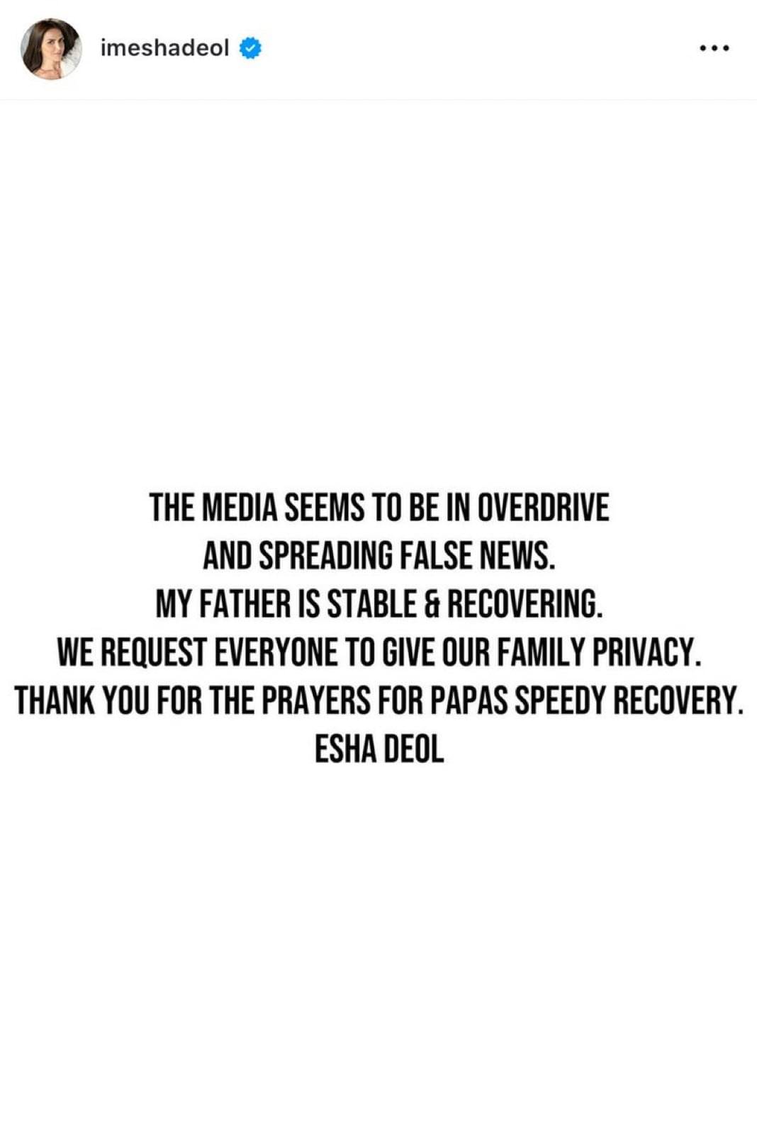 Read More: Esha Deol Reacts To Father Dharmendra's Death Rumours