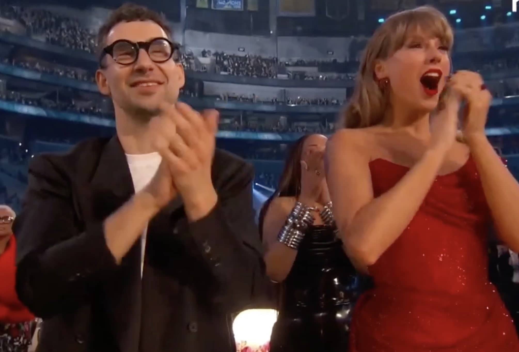Jack Antonoff and Taylor Swift seemed extremely happy when Sabrina Carpenter accepted the Grammy for Best Pop Vocal Album.