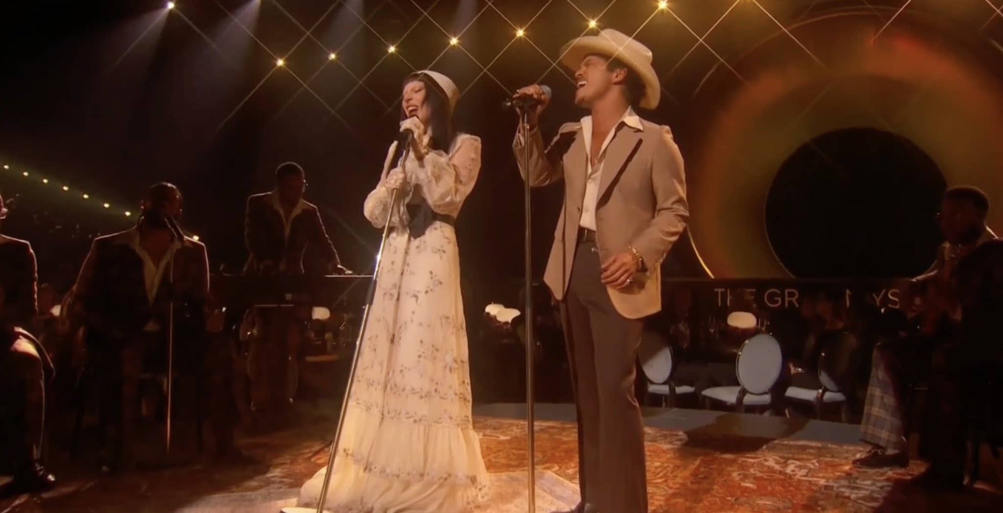 Bruno Mars is from Hawaii and Lady Gaga is from New York, but the pair are singing for California. “We love you California,” Lady Gaga said, closing out the duo’s mournful cover of The Mamas & The Papas’ California Dreamin’. The performance was part of a segment meant to raise awareness and funds for wildfire relief in the Los Angeles area.