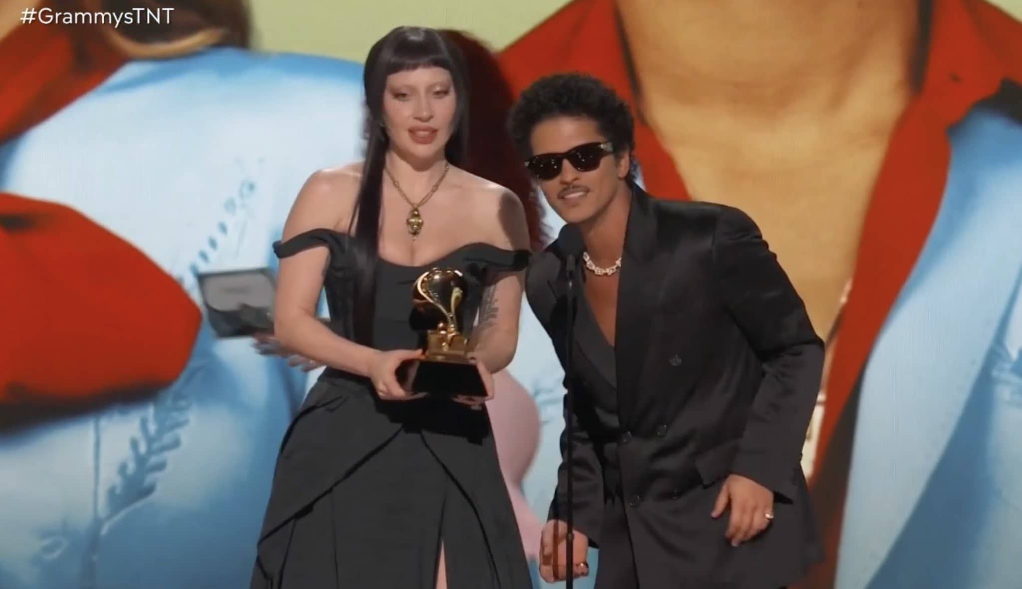 While accepting her Grammy for Best Pop Duo/Group performance alongside Bruno Mars, Lady Gaga took the moment to speak about the LGBTQ+ community. “I just want to say tonight that trans people are not invisible,” the singer said. “Trans people deserve love. The queer community deserves to be lifted up. Music is love.”