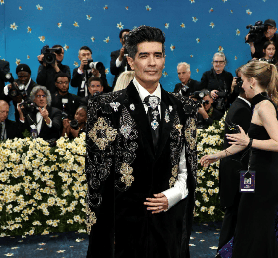 Popular Indian designer Manish Malhotra made his debut at the MET Gala 2025. He walked the red carpet in a black suit, teamed with an embroidered cape and matching jacket. He accessorised the look with 7 brooches.