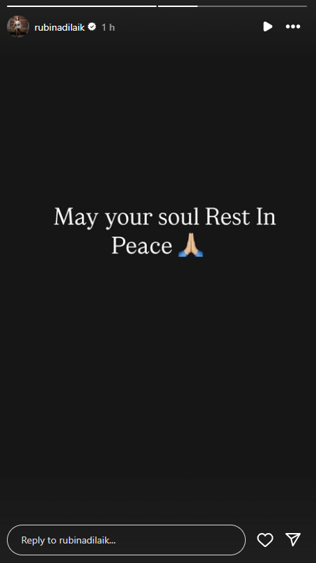 Rubina Dilaik took to her Instagram stories to pay tribute to Shefali Jariwala and wrote, “May you soul Rest In Peace,” followed by folded hands emoticons.
