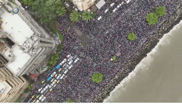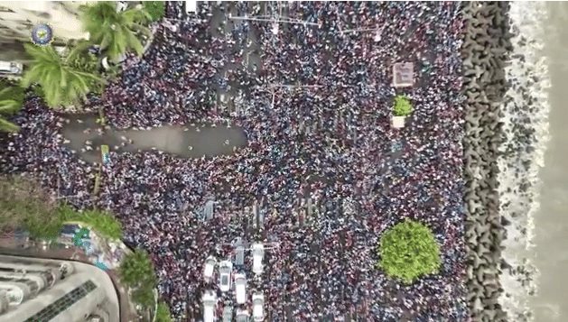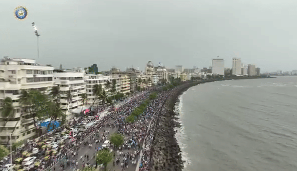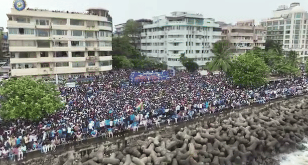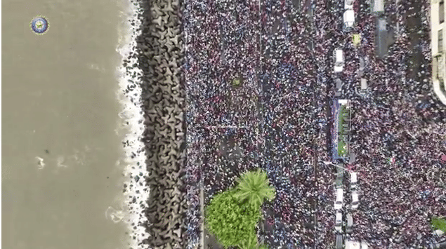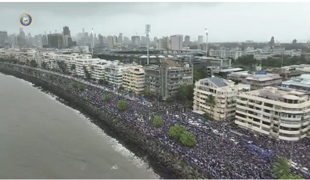 As Rohit Sharma’s champions hit the roads of Mumbai’s Marine Drive, stunning visuals from the Queen’s Necklace emerge