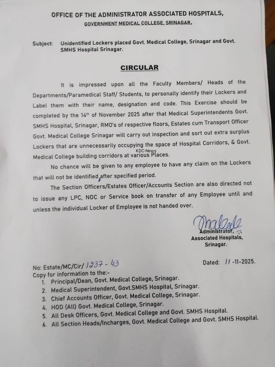 Red Fort Blast LIVE: The Administrator of Associated Hospitals Srinagar has issued a circular to tighten security protocols and conduct internal checks across medical institutions. The notices compel all departmental heads, faculty, and staff to affix their names, designations, and codes to their respective storage units immediately, with the Srinagar college setting a deadline of November 14, 2025.