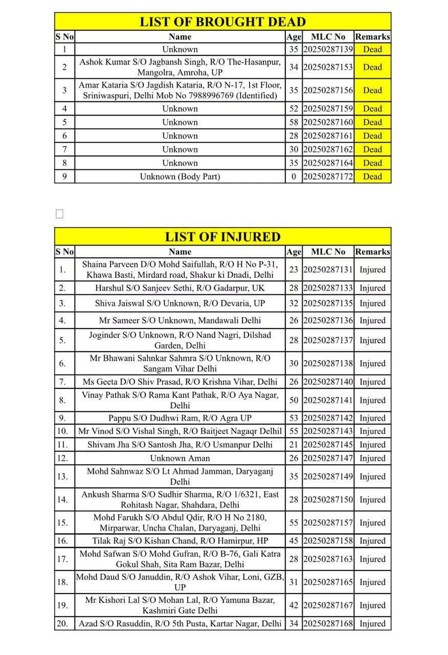 Delhi Red Fort Blast LIVE: 15 Admitted to Lok Nayak Hospital, 9 Dead, 3 Critical
