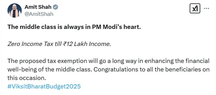 He also hailed the zero tax on income up to Rs 12 lakh per annum as a significant step towards alleviating the "financial burdens of hardworking families".
