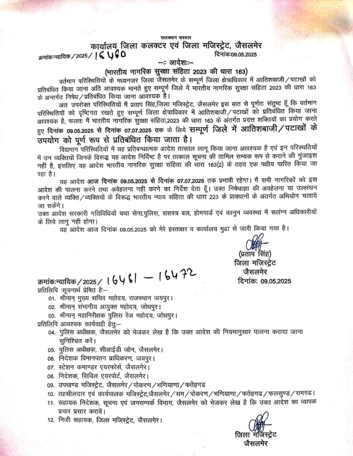 The attacks extended across Jammu, Punjab, and Rajasthan, with Pakistani drones being shot down in several sectors including Naushera. Complete blackouts were enforced in Jammu, Bikaner, Jalandhar, Kishtwar, Akhnoor, Samba, and Amritsar as part of precautionary measures, while sirens and explosions were reported from various locations, including Amritsar on the morning of May 9.