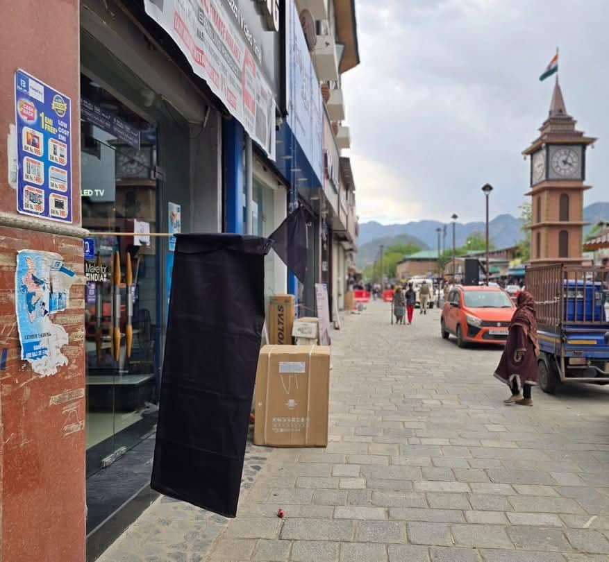 Shopkeeper in Lal Chowk Has Put Up a Black Flag as a Symbol of Protest
