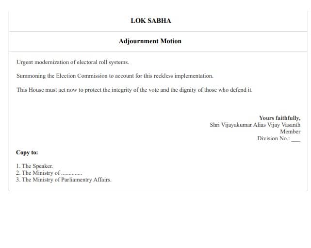 Parliament Winter Session Day 2 LIVE: Kanniyakumari MP Vijay Kumar alias Vijay Vasanth has moved an adjournment motion in the Lok Sabha, calling the Election Commission’s Special Intensive Revision a rushed and unplanned exercise that has pushed India’s electoral system into crisis.