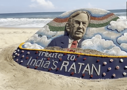 Sand artist creates sand art to pay tribute to Ratan Tata
