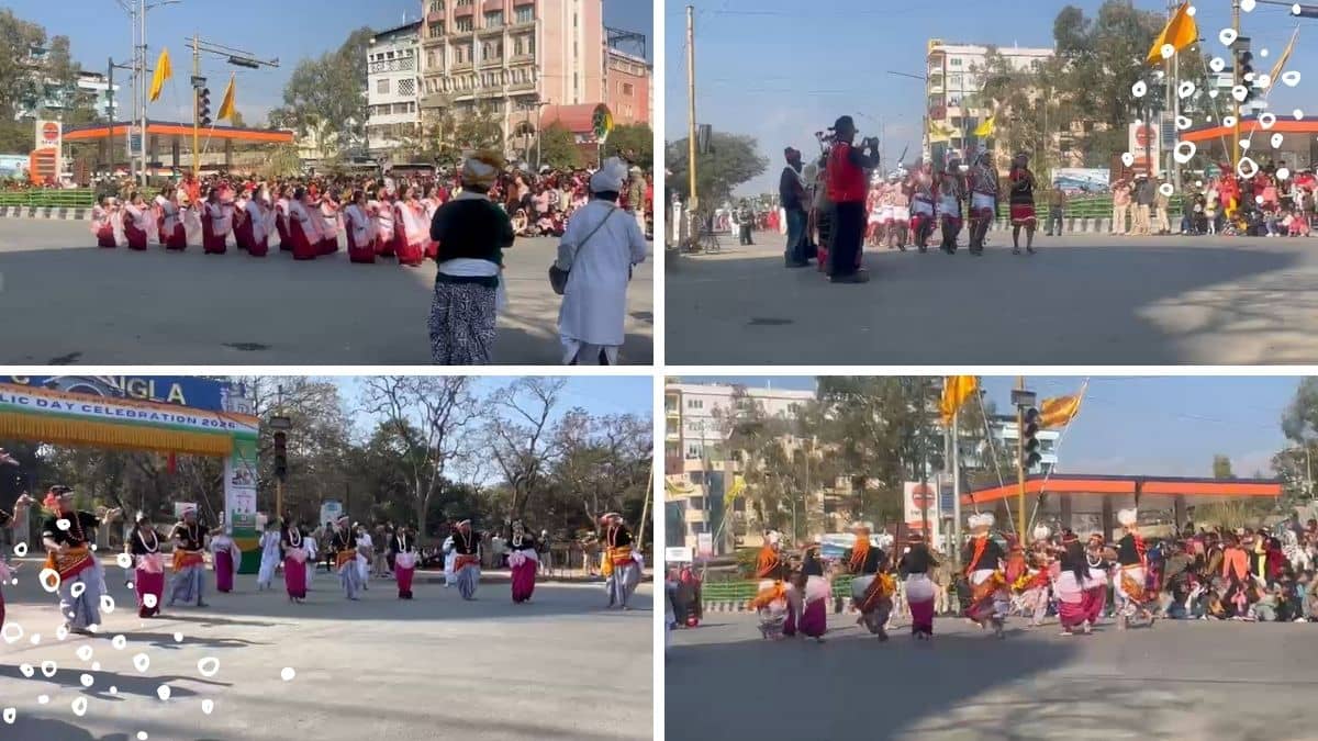 In Manipur, people celebrated the 77th Republic Day outside Kangla. They commemorated the day with cultural performances by various communities at the venue. Check out the glimpses below: