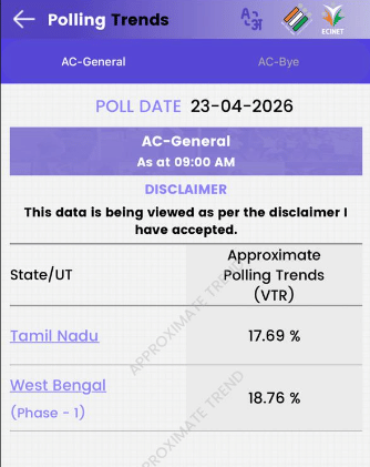 Tamil Nadu Election 2026 LIVE: Voter Turnout Hits 17.49% in Tamil Nadu Till 9 AM.