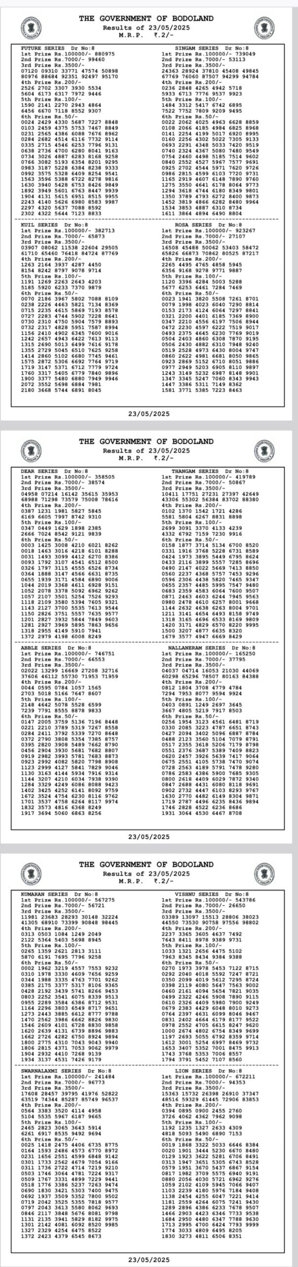 Bodoland Lottery Sambad Today Result 23-05-2025 Friday result: Bodoland lottery Friday result check are here…
