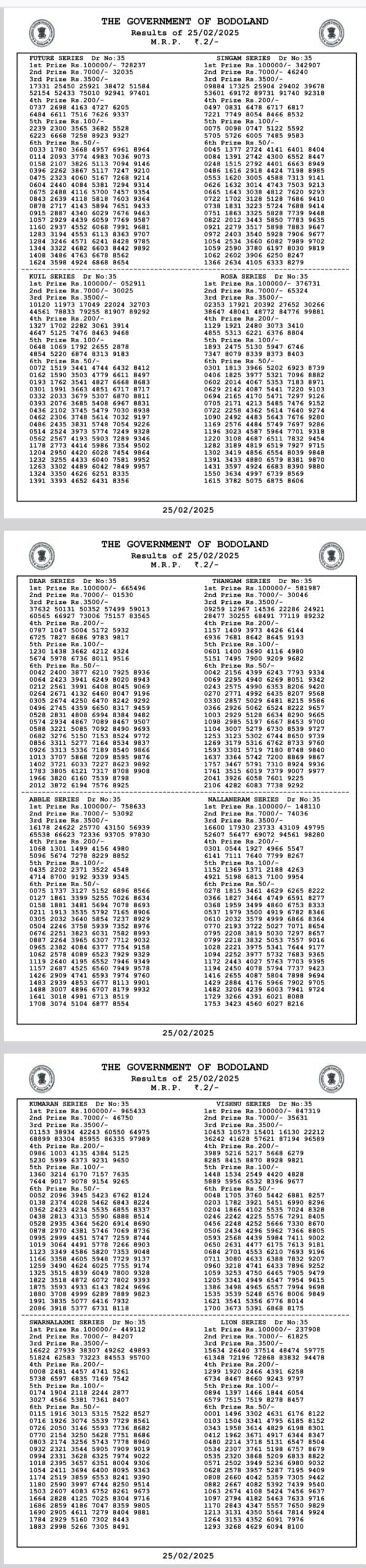 Bodoland Lottery Sambad Today Result 25-02-2025 TUESDAY 12 PM, 3 PM and 7 PM