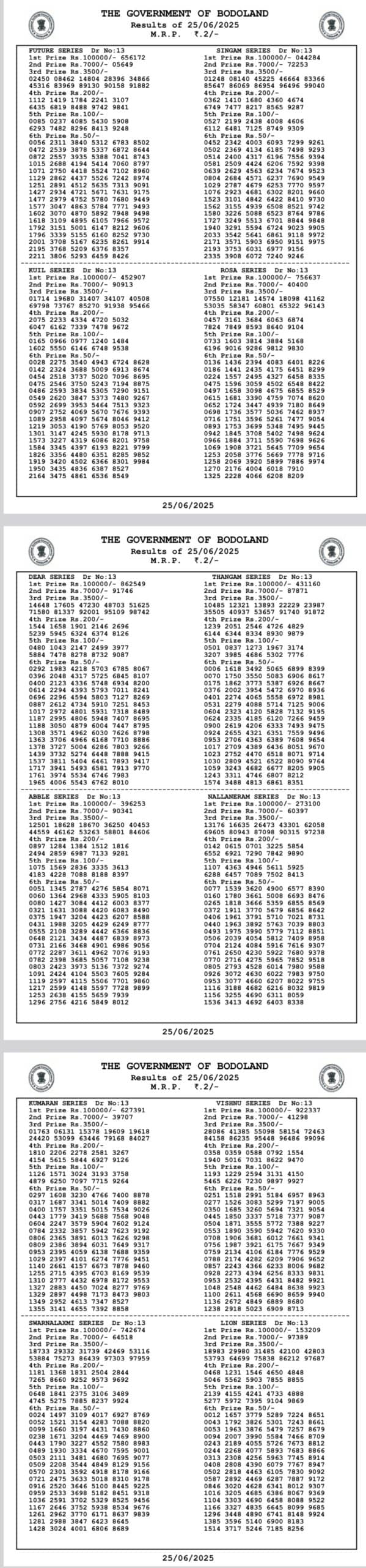 Bodoland Lottery Sambad Today Result 25-06-2025 WEDNESDAY result: Bodoland lottery Friday result check are here…