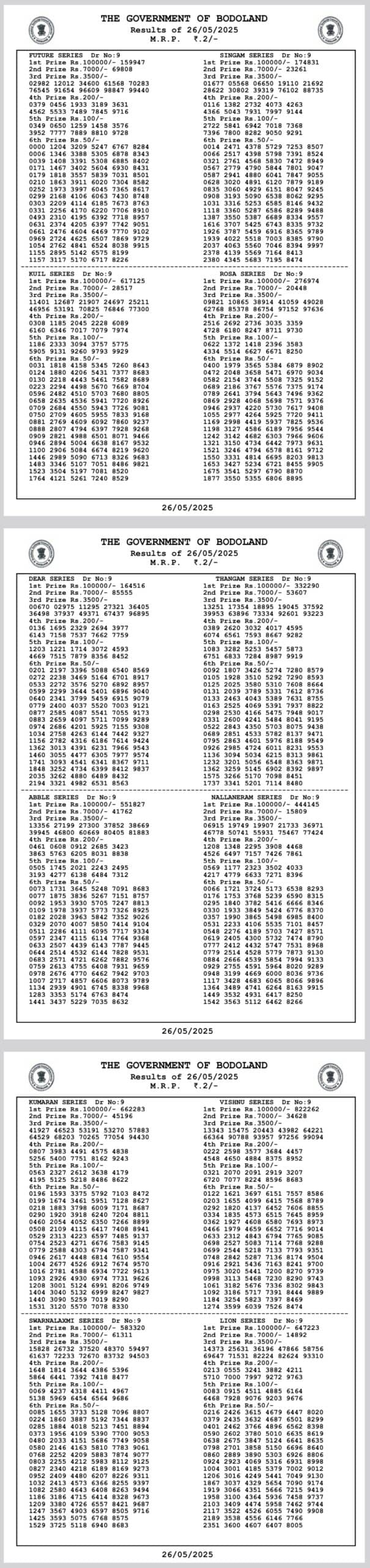 Bodoland Lottery Sambad Today Result 26-05-2025 MONDAY 12 PM, 3 PM and 7 PM