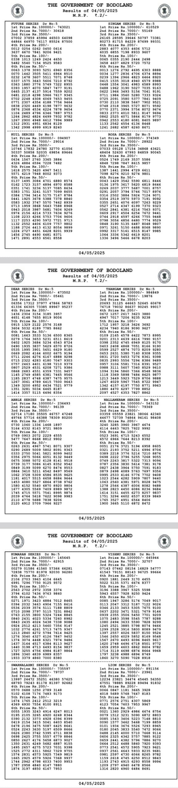 Bodoland Lottery Sambad Today Result 4-05-2025 SUNDAY 12 PM, 3 PM and 7 PM