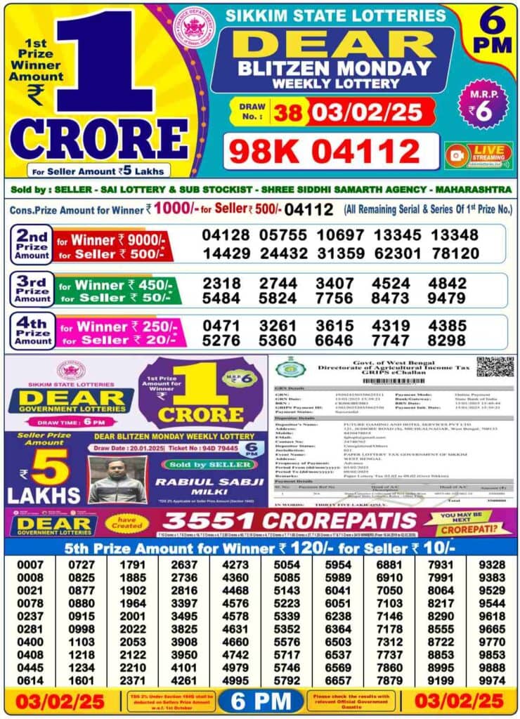 Nagaland Lottery Sambad Dear BLITZEN 6 PM Result OUT: 1st Prize Winner 1 CRORE