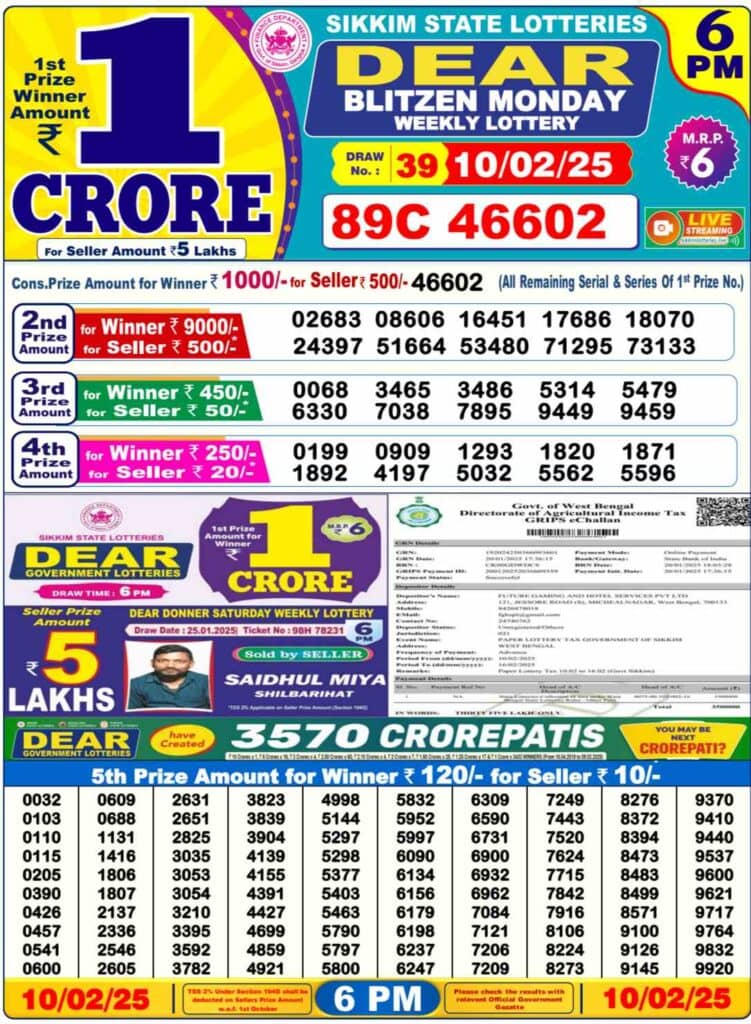 Nagaland Lottery Sambad Dear BLITZEN 6 PM Result OUT: 1st Prize Winner 1 CRORE
