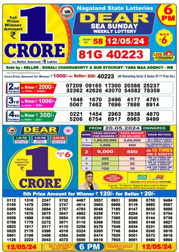 In order to provide the state government with a stable source of income, the Finance Department oversaw the establishment of the Nagaland State Lotteries in 1972. Every day of the week, the Nagaland State Lottery is held at three distinct times of the day: morning, day, and evening. The lottery is held every day under a different name with varying prize money, with Rs. 1 crore (plus the Super Prize amount) as the highest reward. Nagaland State conducts three daily lotteries: Dear Morning, Dear Day, and Dear Evening. Tickets for these lotteries cost Rs. 6 a piece.
