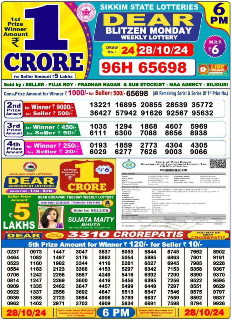 Nagaland Lottery Sambad Dear BLITZEN 6 PM Result OUT: 1st Prize Winner 1 CRORE