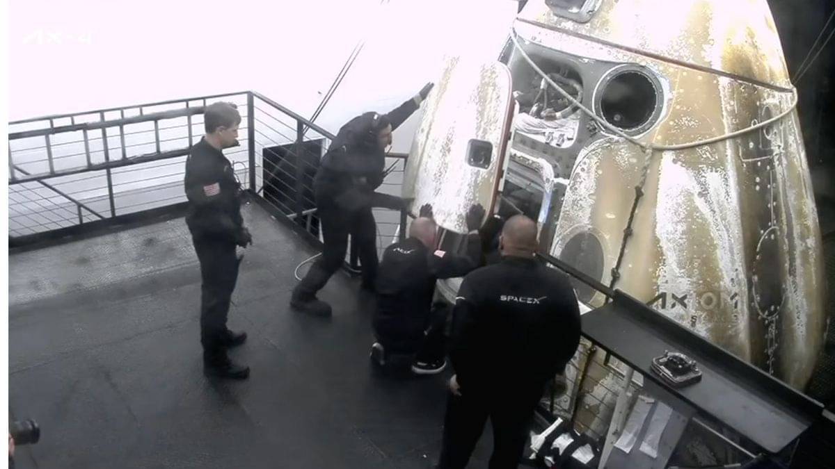 The SpaceX Dragon capsule is now being onboarded to the rescue ship, which will take the Axiom-4 crew to the main ship. They will then disembark the capsule before being sent to the rehabilitation centre. The debriefing is expected to follow minutes after the rehab.