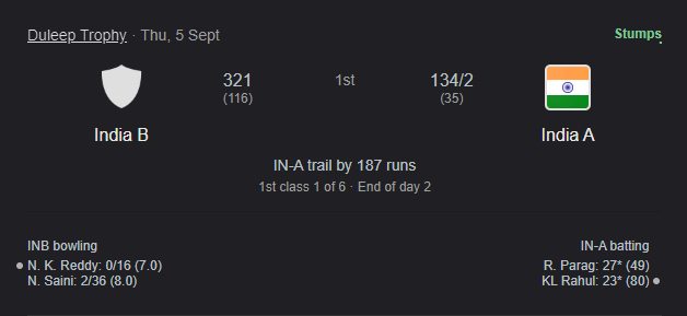 KL Rahul, Riyan Parag take charge for India A in Day 1 while Axar, harshit in action for India D in the other match.