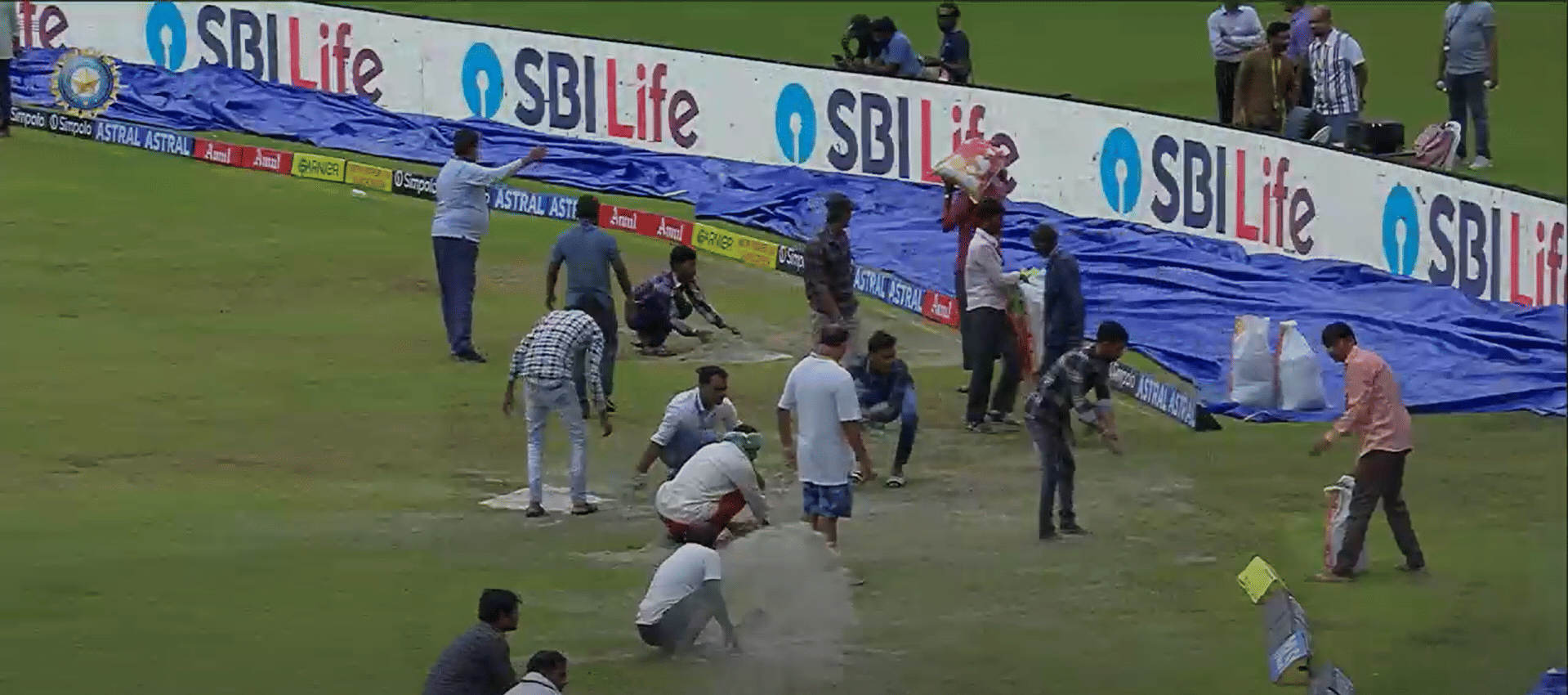 IND vs BAN Live: Ground staff working on mid-off side