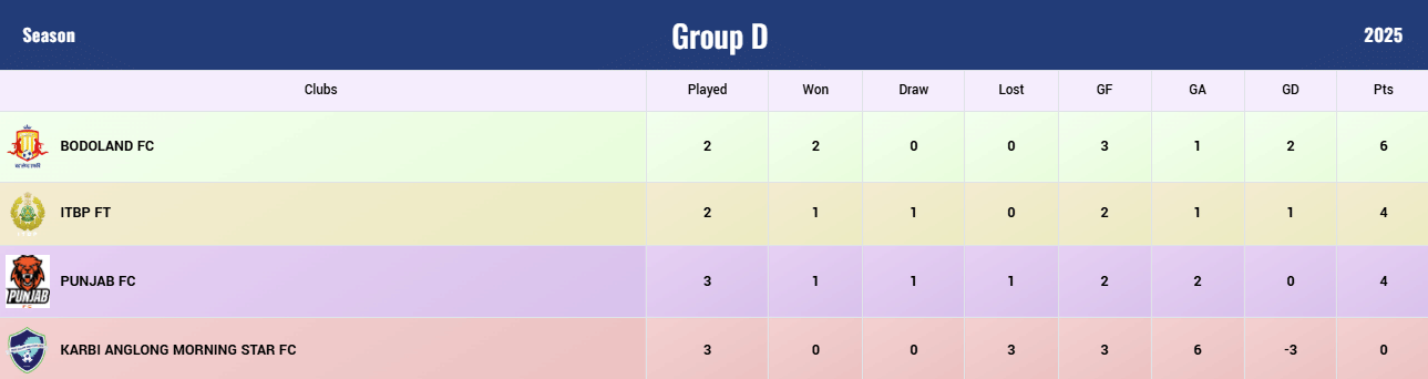 Bodoland FC vs ITBP FT, Durand Cup 2025 Live Score: Here's a look at the Group D points of the ongoing Durand Cup 2025.