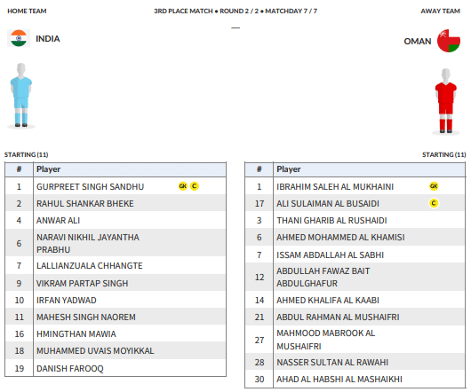 India vs Oman CAFA Nations Cup 2025 Live Score: India and Oman's Substitutes