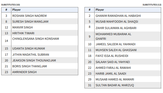 India vs Oman CAFA Nations Cup 2025 Live Score: Here is the list of substitutes for India and Oman.