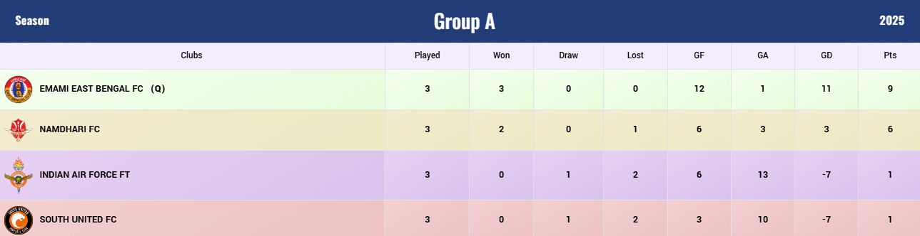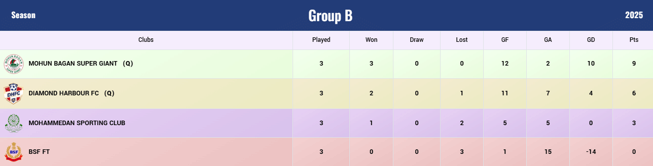 Durand Cup 2025 Quarterfinal 4, Mohun Bagan Super Giant vs East Bengal FC Live Score: Mohun Bagan SG Topped Group B Standings