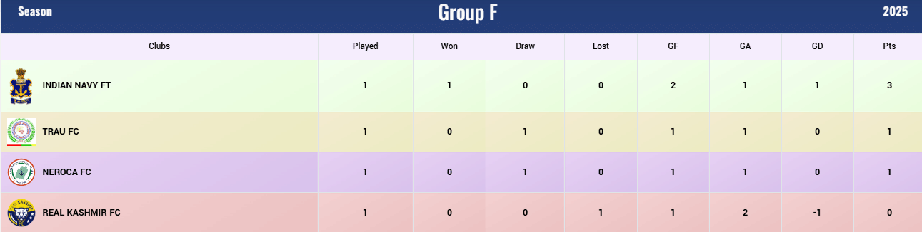 TRAU FC vs Real Kashmir FC Live Score: A Quick Look at The Points Table of All Groups