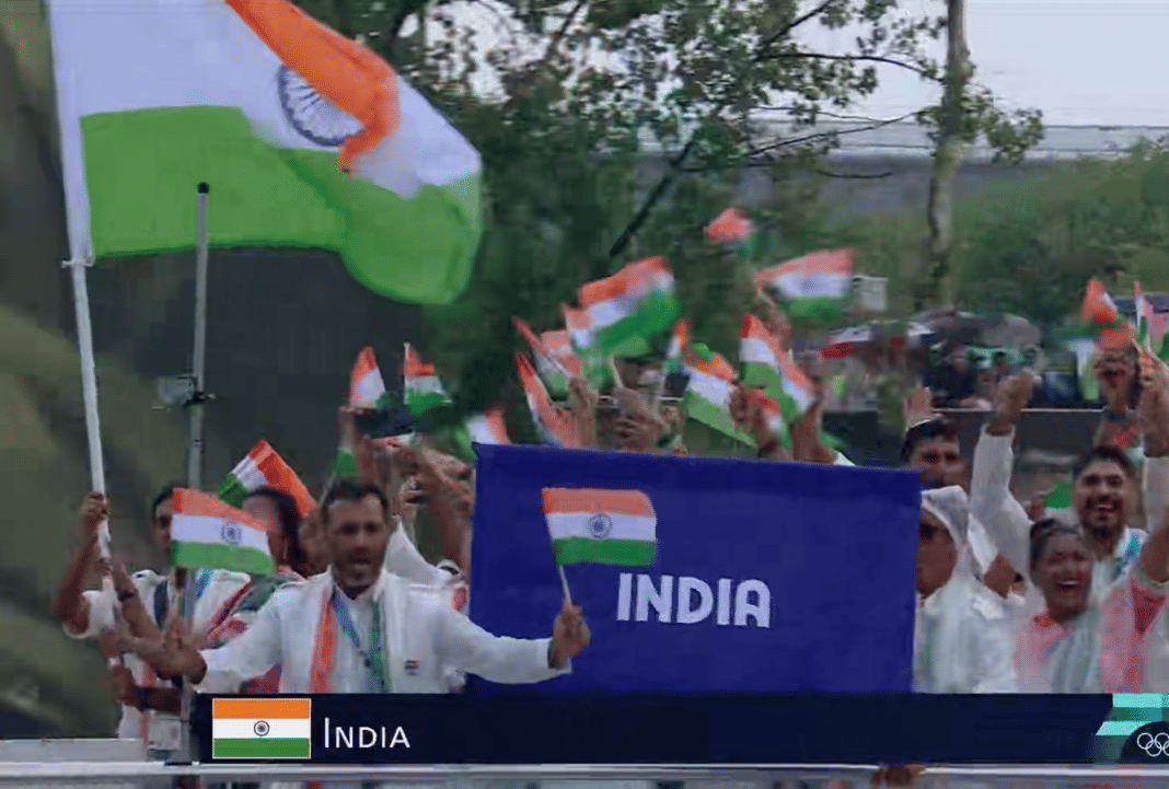 - On the Seine River, there was a Parade of Nations that floated. Sharath Kamal and PV Sindhu carried the Indian flag. The Indian delegation at the Parade of Nations consisted of 78 athletes and officials.