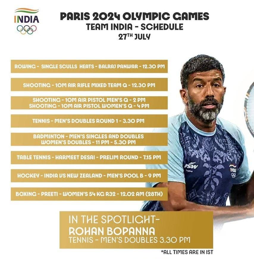 *Men's doubles first-round match: Rohan Bopnna and N Sriram Balaji vs Edouard Roger-Vasselin and Fabien Reboul (France) (3:30 pm IST)
